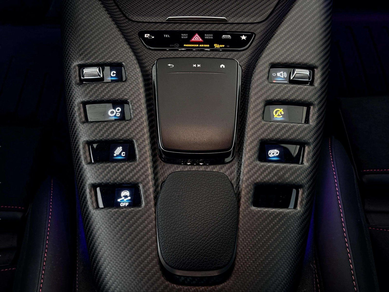 - Rear seatback upholstery Carbon fiber rear seatback upholstery