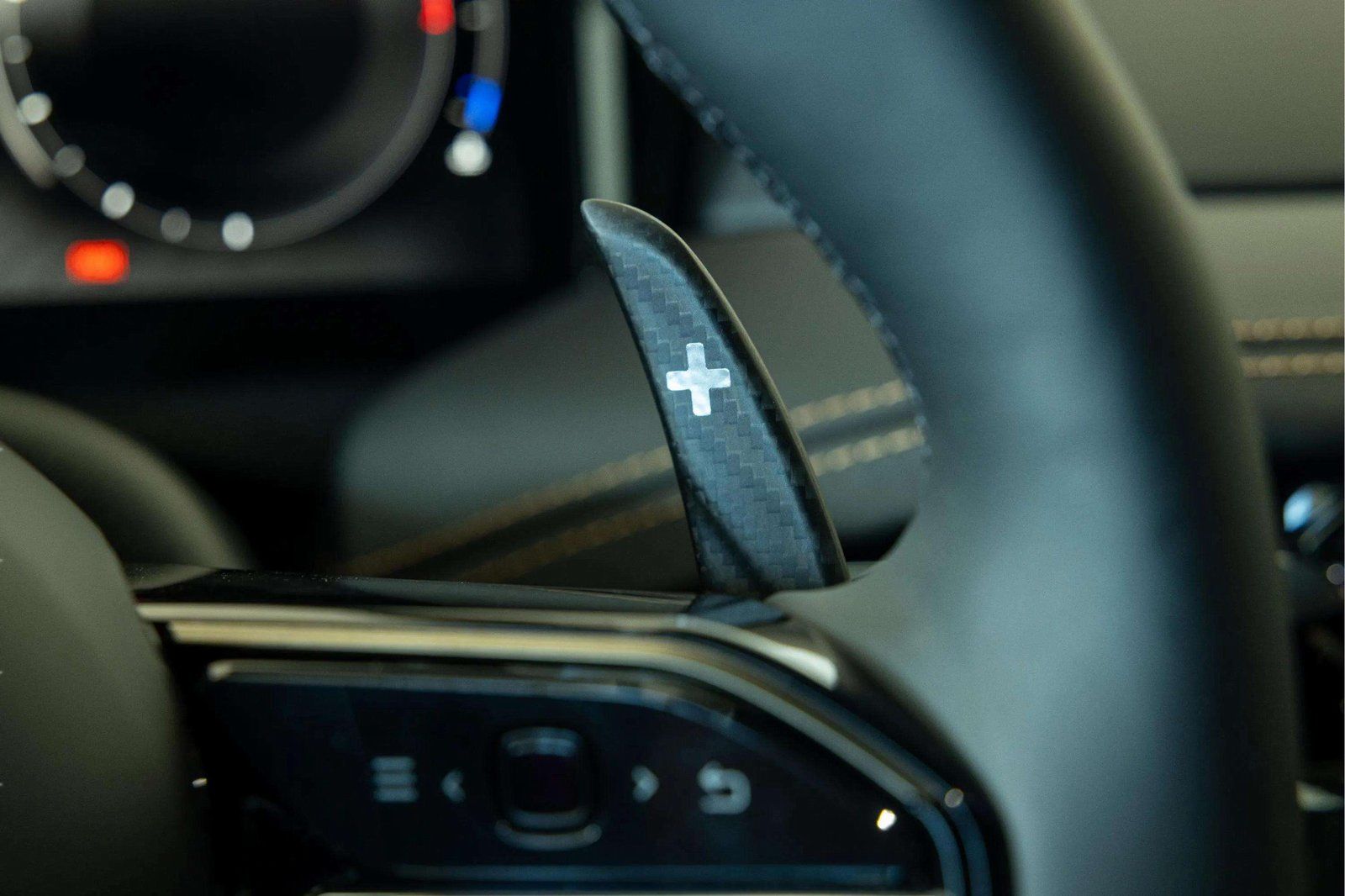 - Console insert material Leather and carbon fiber console insert