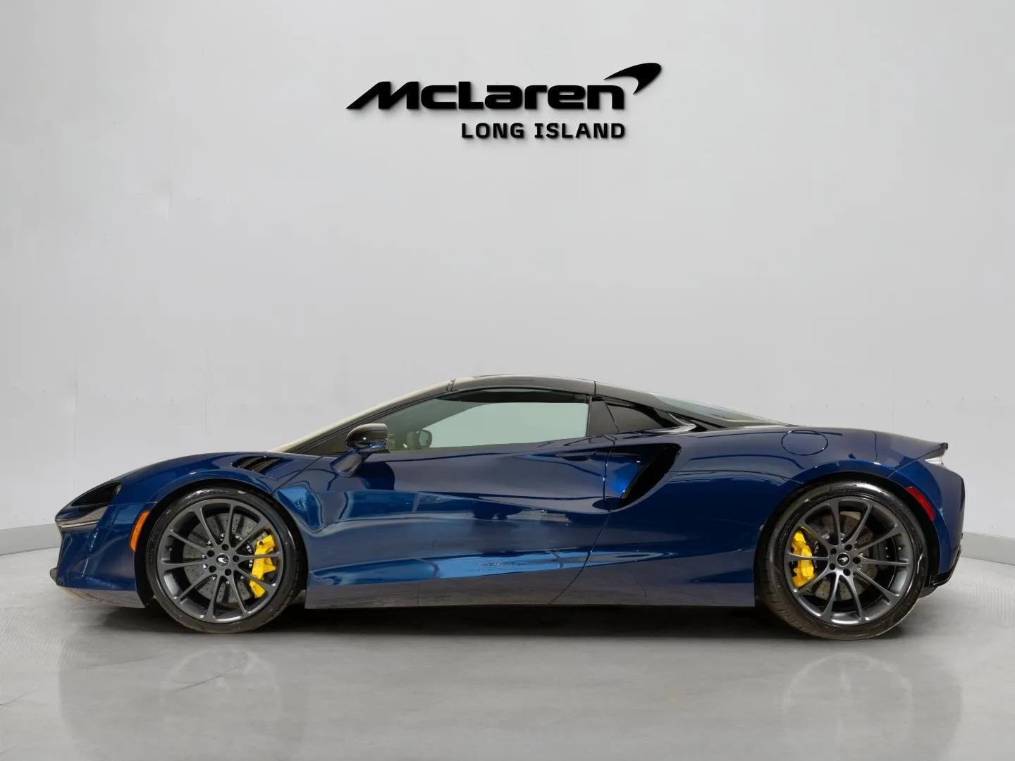 Our 2026 McLaren Artura Spider in Blue blends timeless McLaren design, hybrid innovation, and drop-top drama for discerning enthusiasts. Motivated by a Twin TurboCharged 3.0 Liter V6 and an Electric Motor generating a combined 691hp paired with an 8 Speed SSG Dual-Clutch Automatic transmission for nearly 21 miles of electric range. With the ability to attain nearly 21mpg on the highway, you'll be tempted to enjoy this Rear Wheel Drive machine's sensational handling whenever the mood strikes you. You'll also love showing off our McLaren's aerodynamically honed bodywork highlighted by a power hardtop, LED lighting, dihedral doors, carbon-ceramic brakes, and stunning alloy wheels.Inside our Artura, discover a driver-oriented cabin crafted from Alcantara and other first-class materials. All-day comfortable sports seats, keyless entry/ignition, an electro-chromatic rear-view mirror, and dual-zone automatic climate control add to the ambiance of sporty luxury. Every journey in our McLaren is further enhanced with its intuitive full-color touchscreen infotainment system offering navigation, Bluetooth, Apple CarPlay, and high-fidelity audio.McLaren also rewards you with blissful peace of mind thanks to an ultra-strong carbon fiber monocoque, lane departure warning, traffic sign recognition, a backup camera, and rain-sensing wipers. Every drive in our Artura Spider is an unforgettable experience you deserve to enjoy! Save this Page and Call for Availability. We Know You Will Enjoy Your Long Island Sports Cars Test Drive Towards Ownership!